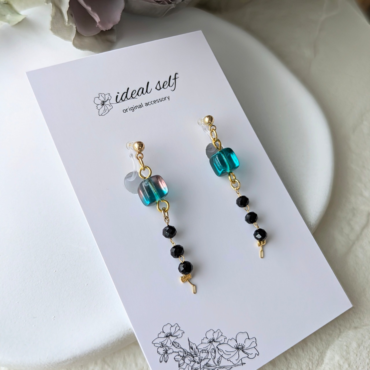 透明感あるグラデーションチェコビーズ(約5mm)に、艶やかなブラックのビーズを組み合わせ、上品で引き締まった印象に仕上げました
