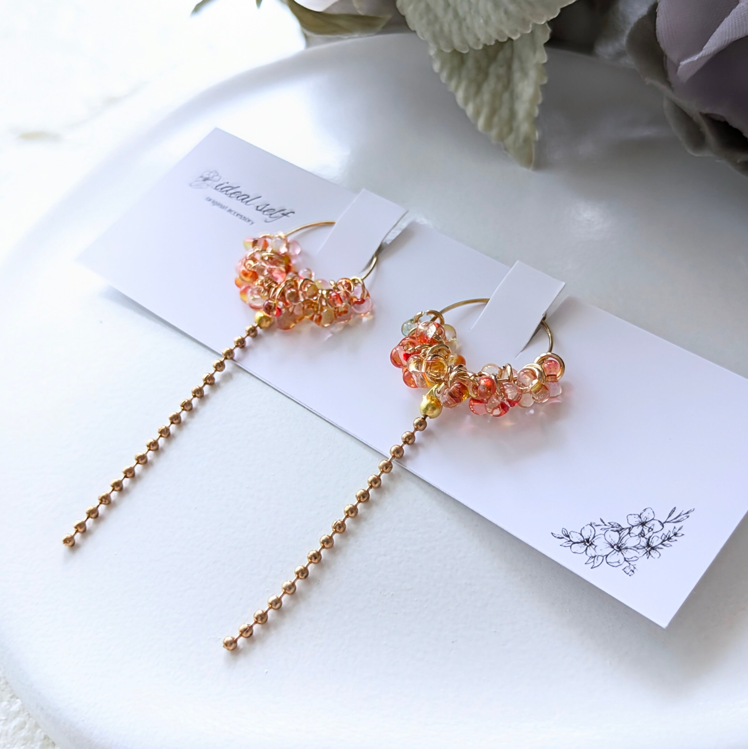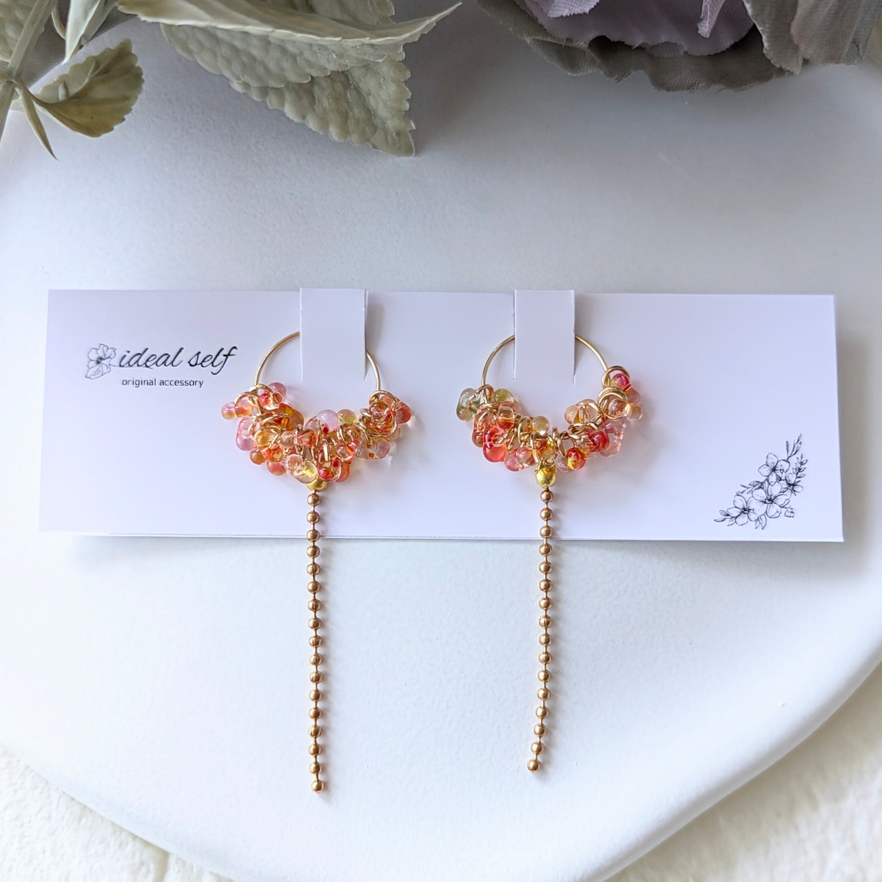 きらめくチェコビーズをぎゅっと束ねた「粒音」シリーズに、やわらかに揺れるボールチェーンを添えた新作が登場しました。